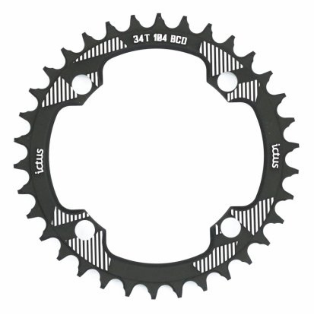 O perfil especial de dentes de engrenagem Mountain Bike (mtb) com Engate de Corrente Dinâmica melhorando o engajamento e a retenção da corrente.