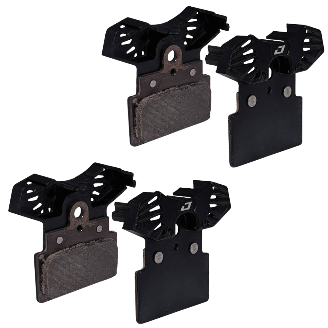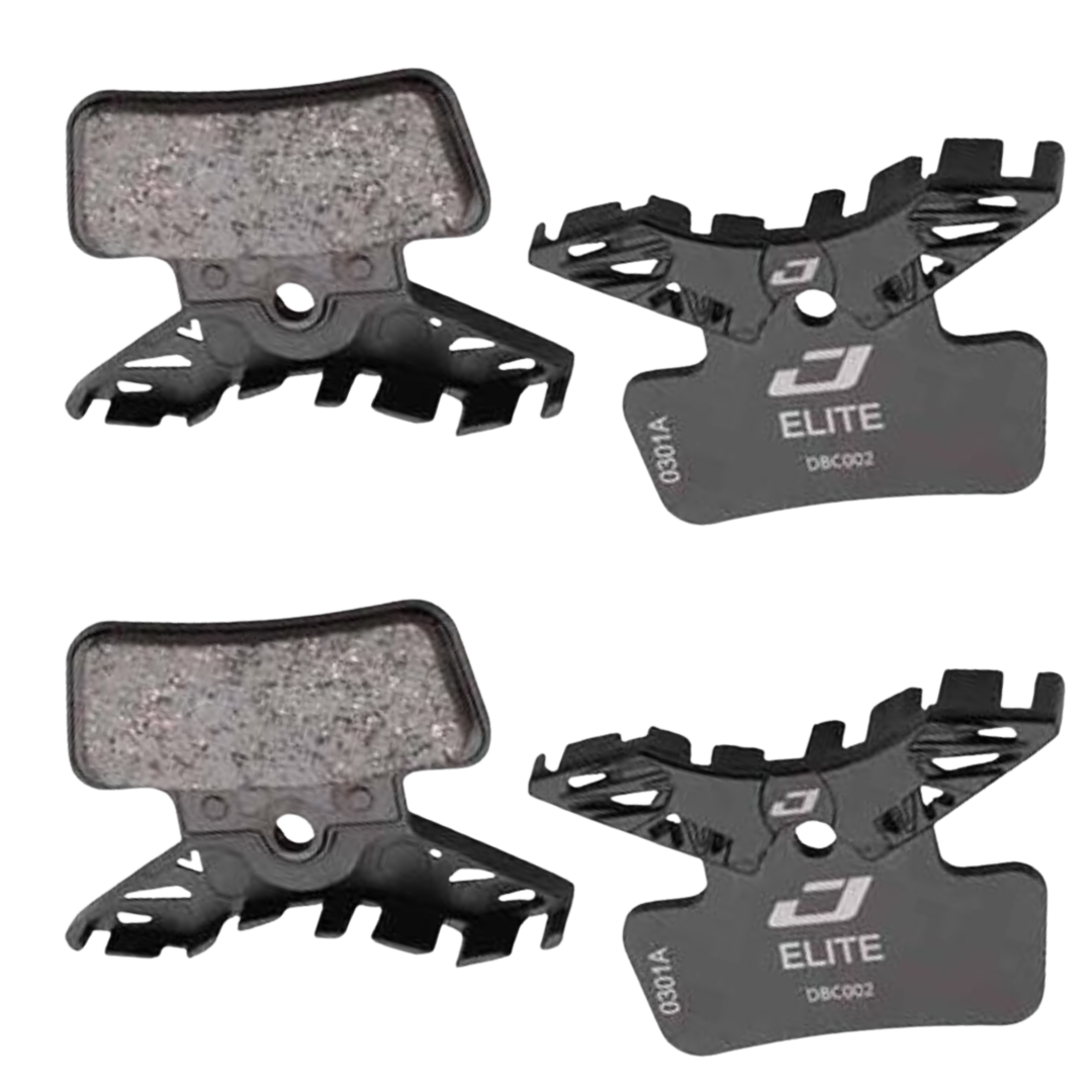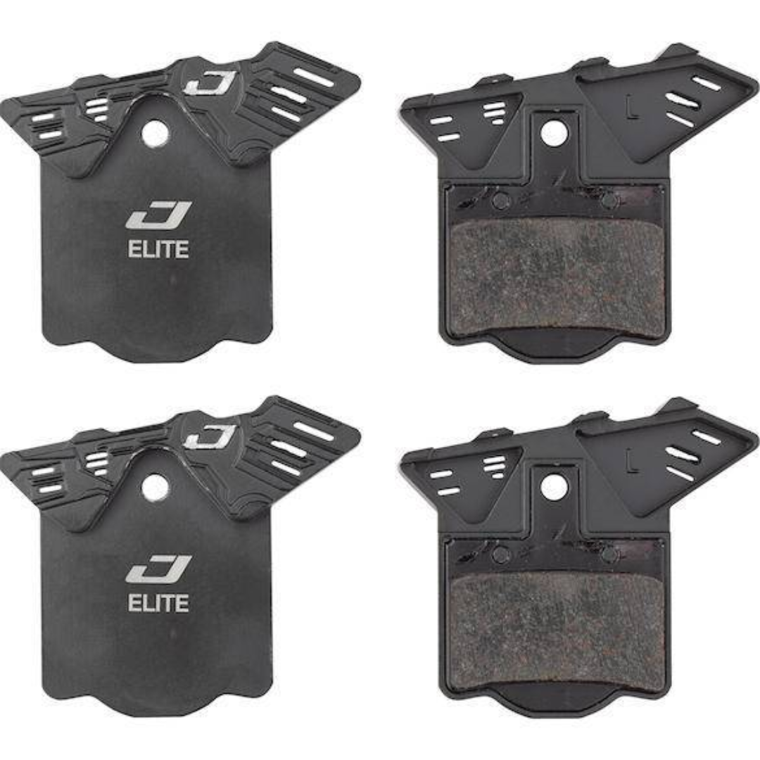 As almofadas de resfriamento Jagwire Elite utilizam aletas de resfriamento de alumínio leves integradas na placa traseira para dissipar o calor do sistema de freio. Uma placa de transferência térmica de grafeno retira o calor do composto semimetálico e do rotor para as aletas de resfriamento, evitando o desbotamento do freio e o empenamento dos rotores.